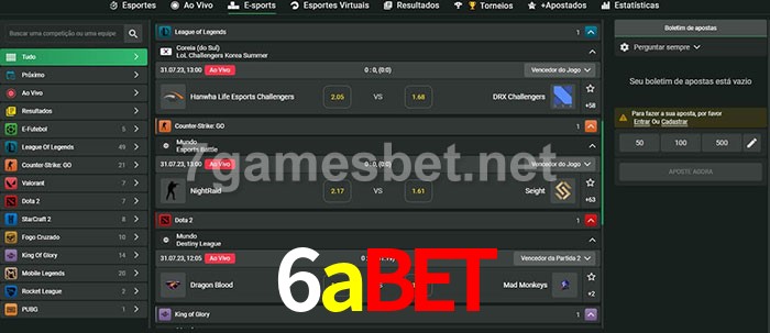 O 6abet oferece uma grande seleção de opções de apostas em e-sports com probabilidades competitivas